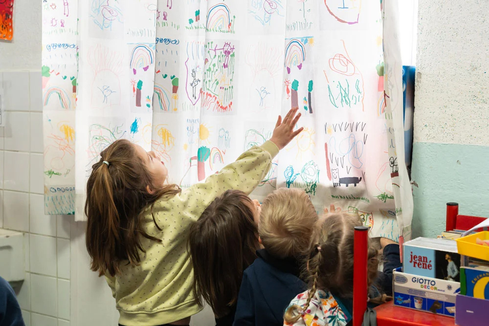 "Le projet textile a été pour notre classe maternelle très enrichissant à la fois pour tous les élèves qui ont vu leurs dessins embellir la classe et la salle de sieste grâce à de magnifiques rideaux, mais aussi pour moi enseignante, qui ai pu inclure au projet pédagogique de l’année axé sur la nature et le vivant une activité concrète et innovante. Bravo pour votre travail et un grand merci à toutes les petites mains qui ont confectionné ces rideaux. Le résultat de ce projet a montré un savoir-faire local et une qualité de travail indéniable en proposant un produit adapté à la vie en collectivité et au bien-être des enfants. Merci à Manon, à Simon et à toutes les personnes qui se sont déplacées dans notre classe pour mettre en place et finaliser ce projet gracieusement. Quelle belle réussite !"