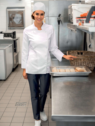 31. Vrouwelijke koksjas met officierskraag VANILLE Art.nr. : VANILLE Bouton